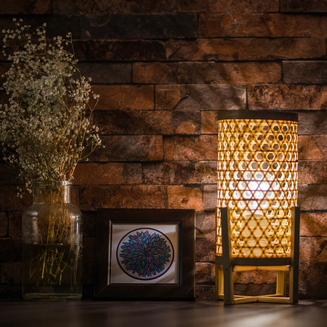 Handcrafted bamboo lamps that create a warm, ambient glow while adding natural elegance and eco-friendly charm to living spaces, cafés, and offices.